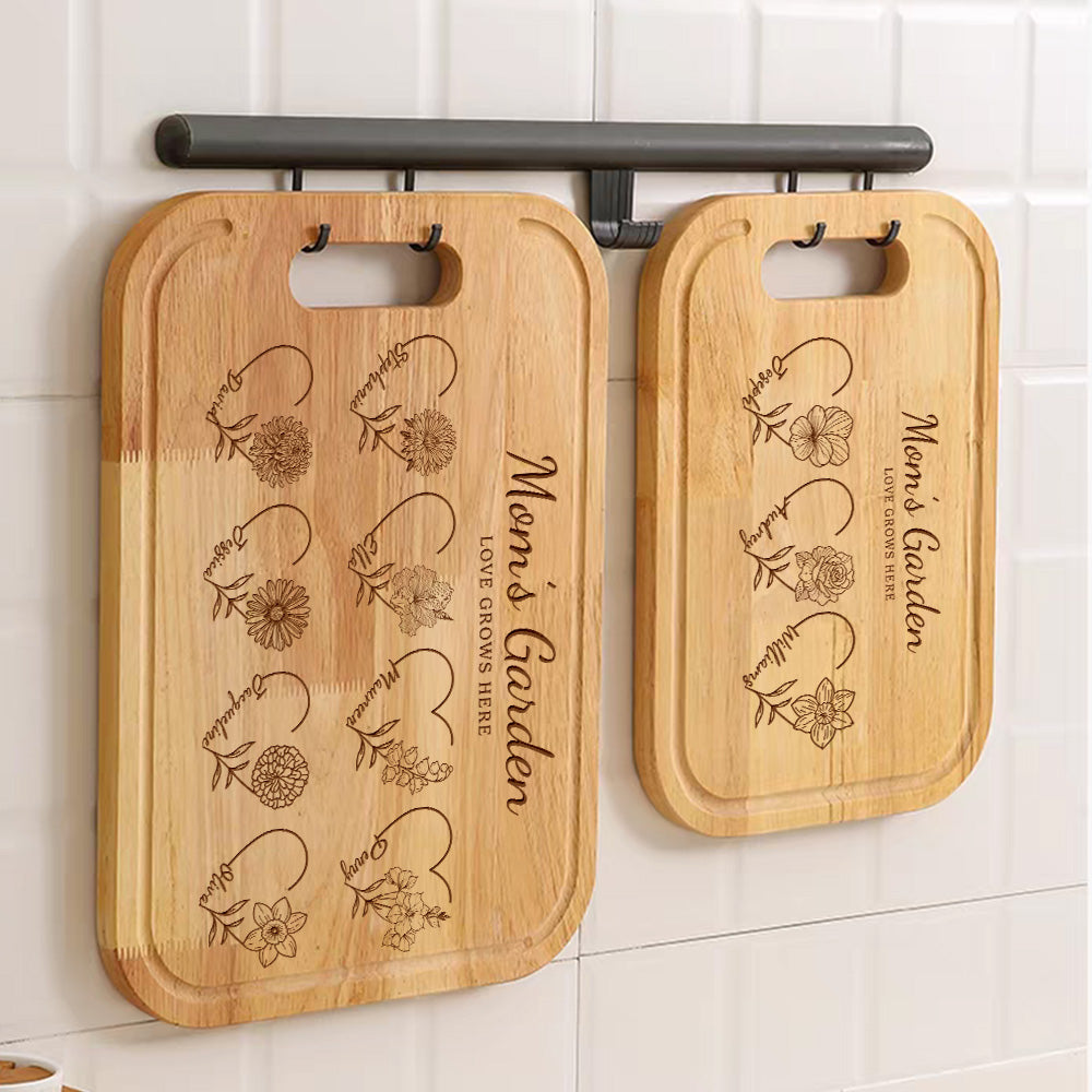 50% OFF✨Customized Mom's Garden Cutting Board With Heart Birth Flowers Names