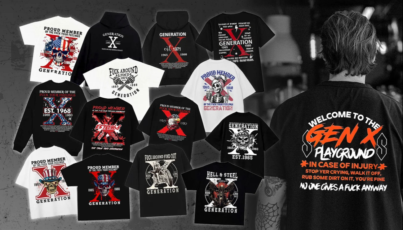 You are the trailblazers who experienced the era of cassette tapes and vinyl records, the witnesses of a time before the internet revolutionized our lives. You've not only observed the world's transformation but also shaped its future. To honor your unique journey, we present the Gen X Series Custom T-Shirts— especially for you.