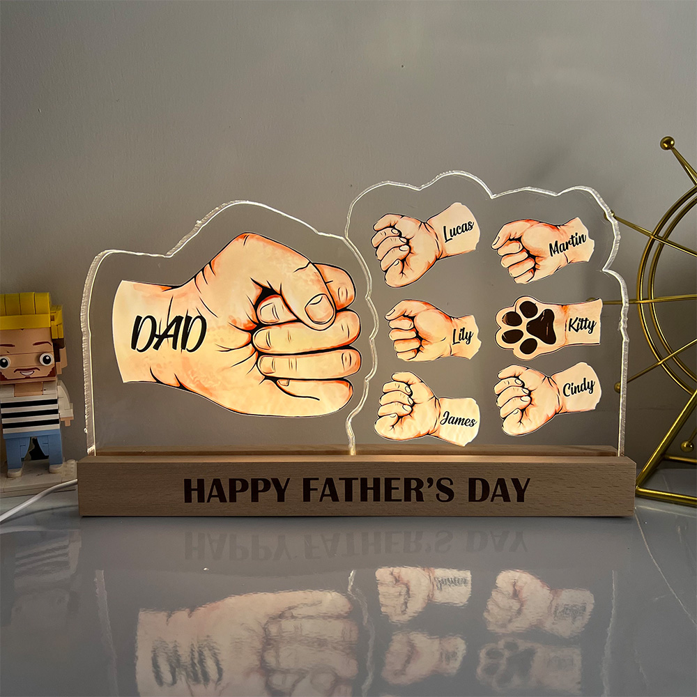 Crafted from premium 15mm-thick acrylic, this unique design features a sliding fist-bump action, separating the larger and smaller fists for an interactive, dynamic effect. It’s not just an eye-catching desk decor piece—it also lights up, with multiple color options and three size choices to fit any space.