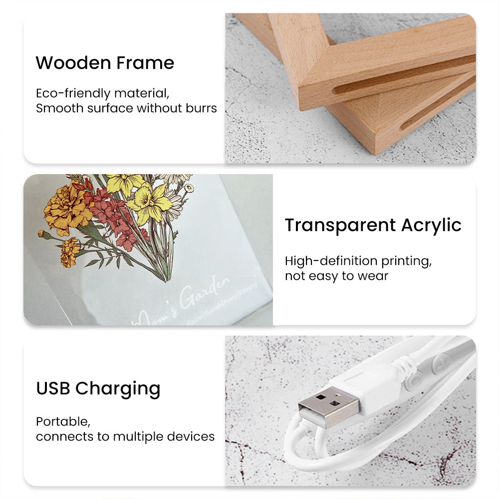 Mom's garden is her children. Birthday flower bouquet photo frame is the best gift on Mother's Day and Mom's birthday. Grandma too.